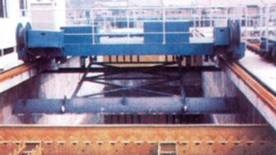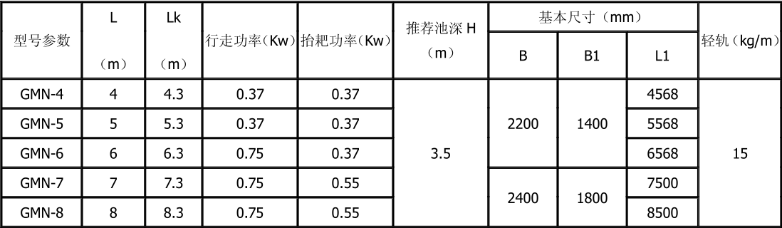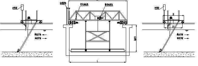 TGN 抬耙式刮泥撇渣機(jī)由行車、刮泥耙、撇渣板及其驅(qū)動(dòng)裝置和控制柜等組成。
