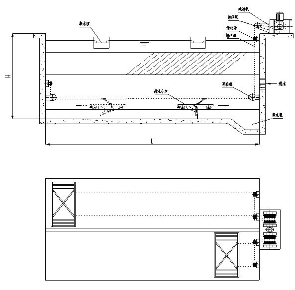 2)進(jìn)水端沉泥量大,故池內(nèi)集泥槽最好設(shè)在進(jìn)水端,使大量沉泥刮送距離短,增強(qiáng)排泥效果。