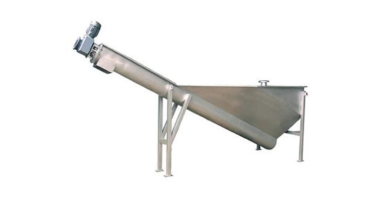 螺旋式砂水分離器由無軸螺旋、襯板、U 型槽、箱體、導流板、出水堰和驅動裝置組成。