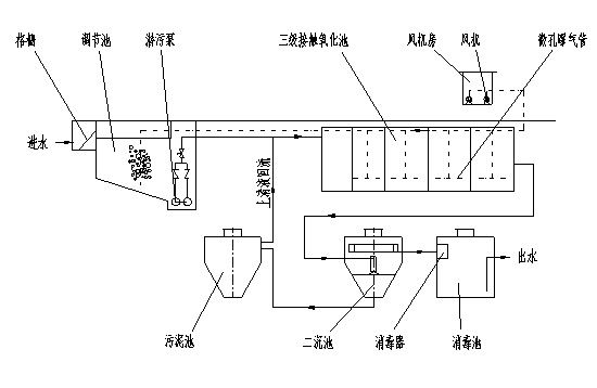 接觸氧化時間可達8小時,填料為新穎半軟性填料,易結膜,不堵塞,填料比表面積為160m2/m3,接觸池氣水比在